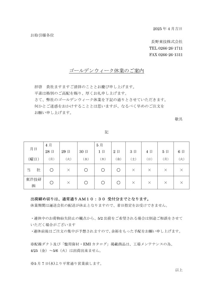 休業期間 2025年4月29日(火)、5月3日(土)~5月6日(火)